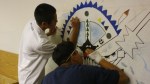 One student discovered that his mural “was not working.” He had created a rough sketch and thought the mural would take better shape on the wall. Joan was delighted to hear him admit that the mural was not working.