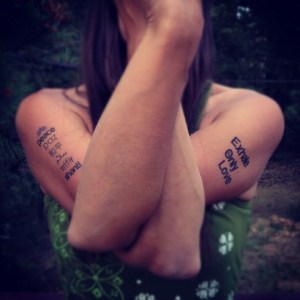 My eyes flashed on the temporary tattoo I picked up at Yoganonymous’ booth that morning:
